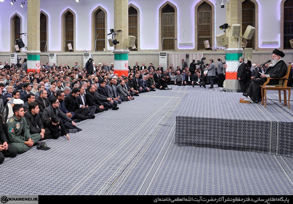 این جلسه برای بزرگداشت یاد و نام شهید عزیزمان، رئیسجمهور شهیدمان، مرحوم آقای رئیسی و دیگر شهدای خدمتی است که با ایشان در این حادثهی تلخ به شهادت رسیدند؛ شهید آلهاشم،(۱) شهید امیرعبداللهیان،(۲) شهدای گروه پرواز،(۳) استاندار محترم آذربایجان،(۴) فرمانده حفاظت.(۵) این مجموعه، در مثل امروزی، در واقع ملّت ایران را داغدار کردند.
